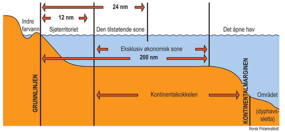 Outline of the maritime zones as defined in the UN Convention on the Law of the Sea. Illustration: Gunnar Sander and Audun Igesund, Norwegian Polar Institute.