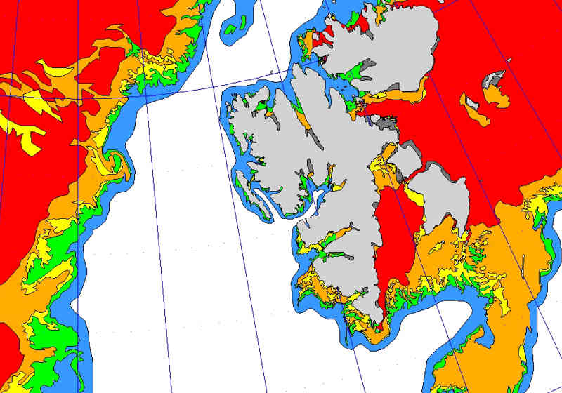 The Svalbard archipelago is located in the High Arctic between 74° and 81° north and 10° and 35° east. Two thirds of the islands are covered with ice and snow all year round.