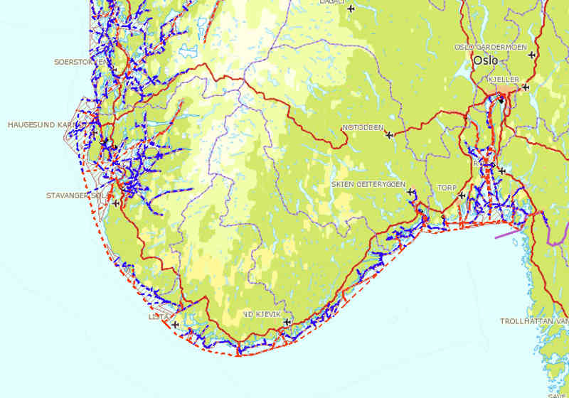 The entire Norwegian coast is covered by a standard reference system of various fairway categories.