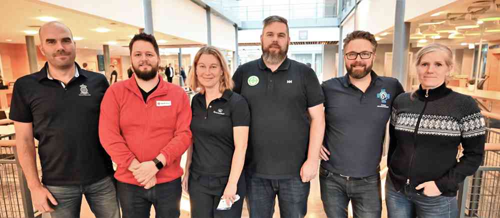 Deltakere fra Felles aksjonsstøtte-gruppen samlet under brukersamling. F.v.: Trond Bjørnøy, HRS, Christian Mortensen, Røde Kors, Anna Karlqvist, BarentsWatch, Ivar Windju, Norsk Folkehjelp, Stig Mebust, Norske Redningshunder, Marianne Stabell Mørch, Politiet. Øvrige deltakere i gruppen er leder Per Olaf Torkildsen, HRS, Sunniva Sande og Sondre Lanenes fra Røde Kors, Petter Flisen, Gisle Antun og Nina Frimanslund fra Politiet og PIT, Vegard Henriksen, Speiderne og Henrik Solhaug, Norsk Radio Relæliga.