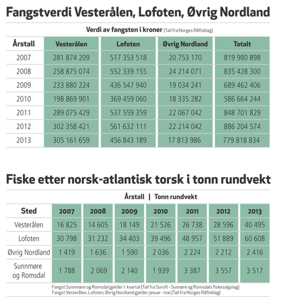 Fisket etter nordøstarktisk gytetorsk ved Vikna på grensa mellom Nord-Trøndelag og Nordland, og på kysten av Sunnmøre og Romsdal har også økt sitt fangstvolum, men disse to fiskeriene er langt mindre enn dem i Vesterålen og Lofoten.