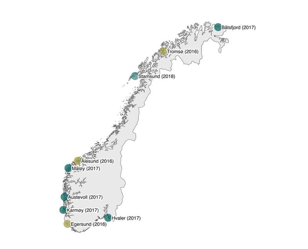 - Hittil er 64 registrerte fartøy med i ordningen og kan levere marint avfall ved mottak i Tromsø, Båtsfjord, Egersund, Ålesund, Karmøy, Måløy, Hvaler, Austevoll og Stamsund.