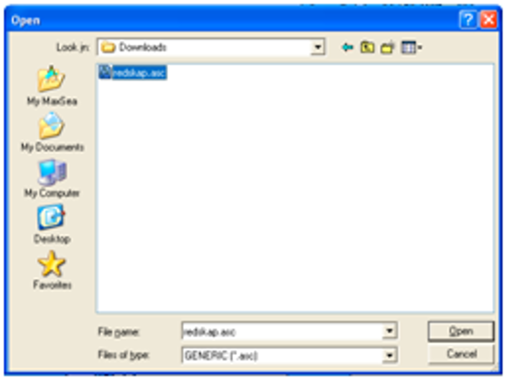 3. Bla deg frem til det konverterte kartlaget og trykk på den. Trykk så på ”Open” / ”Åpne” (start med å trykke på ”My Computer” / ”Min Datamaskin”):