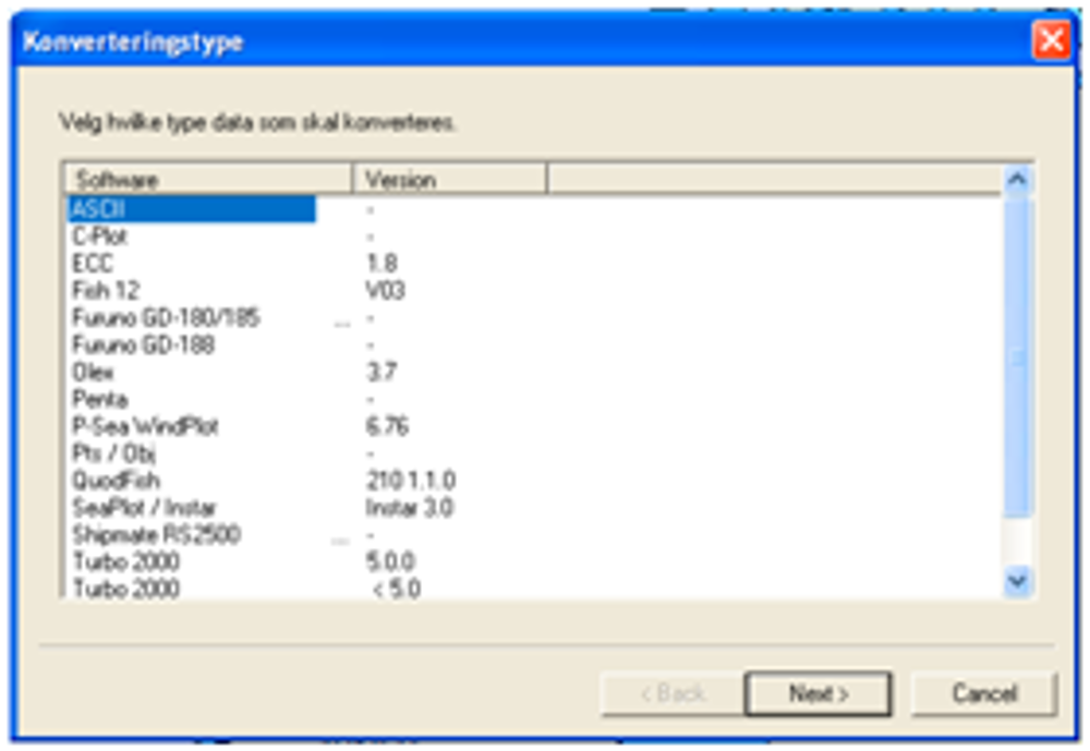 3. Trykk på ”ASCII” og trykk på knappen ”Next >” / ”Neste”: