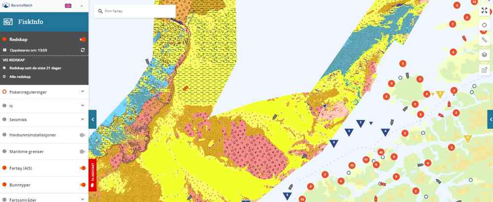 Kartlagene har siden mai også vært å finne i tjenesten FiskInfo. Når faststående bruk vises på dette kartet ser man blant annet at de står på kanten av grunner og i bakker.