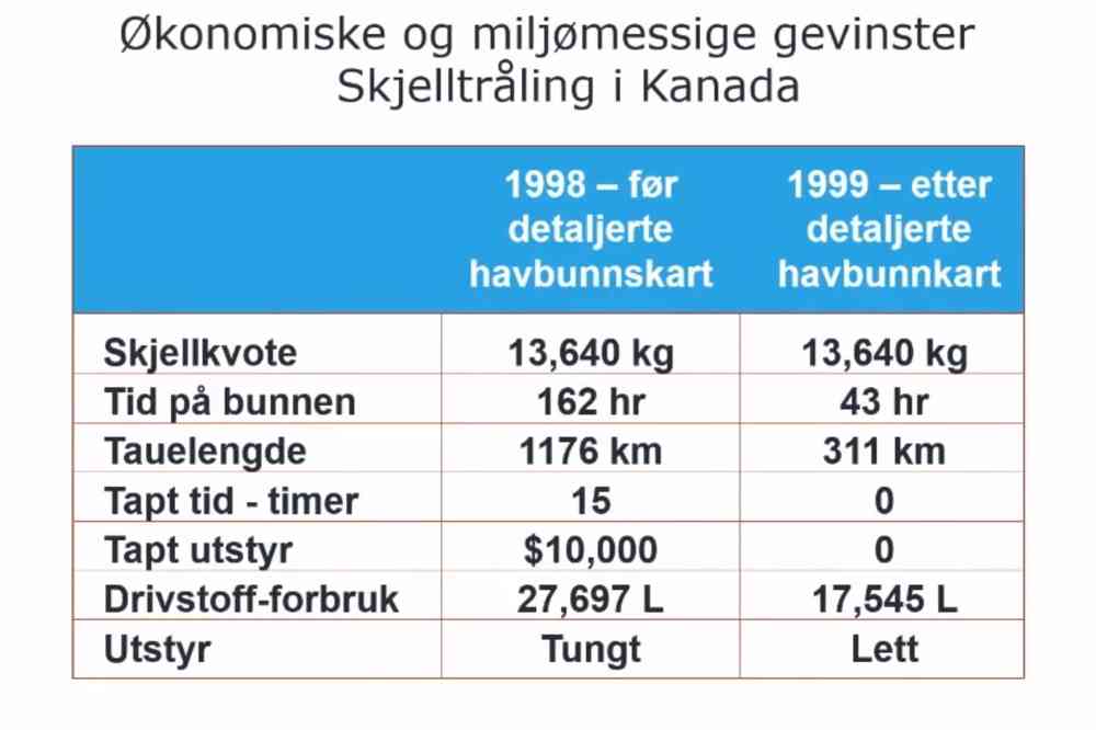 Denne typen førsøksfiske har allerede vært utprøvd i Canada med gode resultater. I rapportene Longva kan vise til har fiskerne både spart drivstoff og redusert tap av utstyr. Se grafikk fra NGU her: