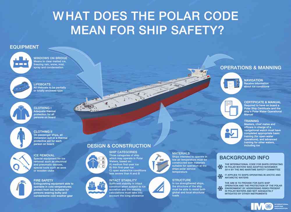 Norge har vært en sterk pådriver og bidragsyter for å få på plass internasjonale kjøreregler for trygg og bærekraftig skipsfart rundt polene. Polarkoden og vedleggene til den eksisterende internasjonale konvensjonen for skipstrafikk, SOLAS, ble vedtatt av IMOs maritime sikkerhetskomités samling i London.