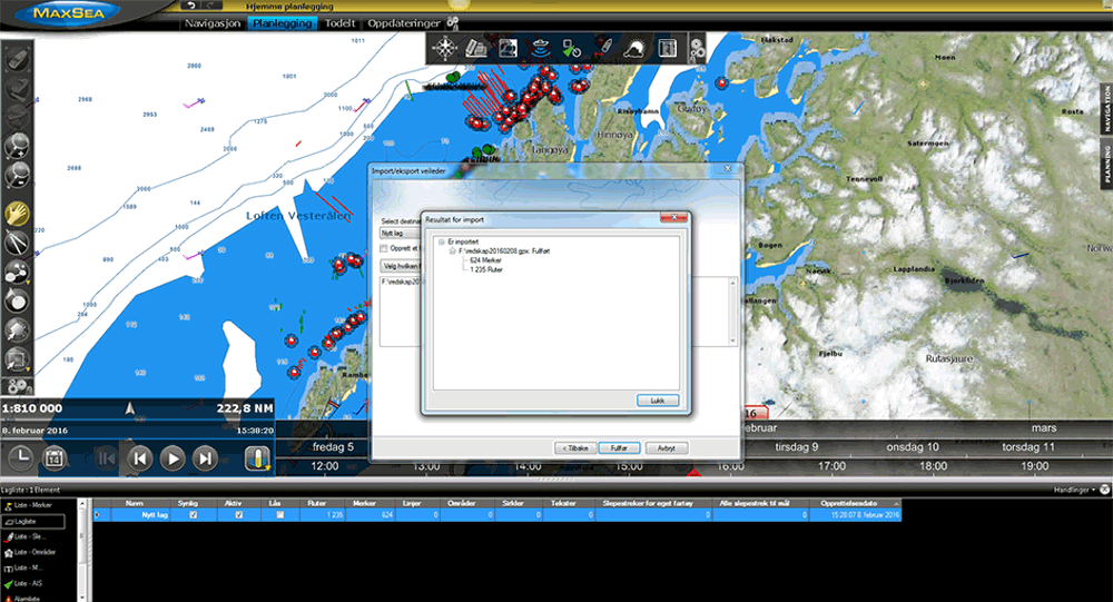 Kartplotteren viser oppdatert informasjon fra BarentsWatch.