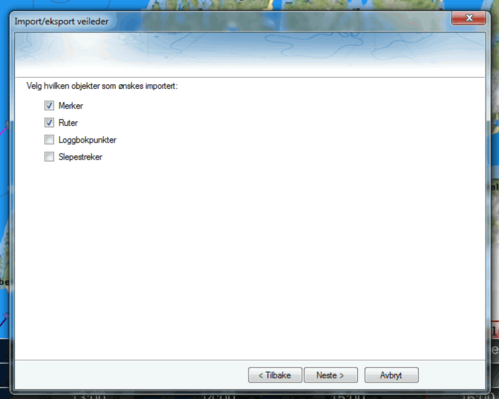 4. Kryss av for Merker og Ruter og trykk Neste.