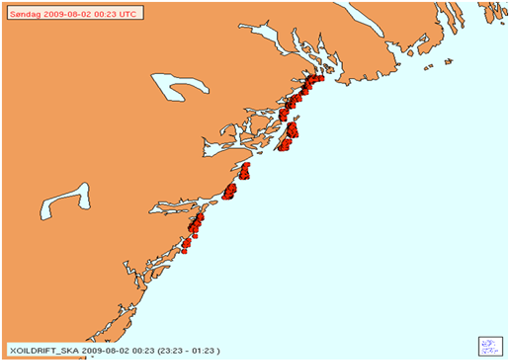 When the cargo ship "Full City" ran aground south of Langesund on July 31 2009, the Meteorological Institute was quickly contacted. The ship leaked large amounts of heavy oil, and over the next few days the coastline between Grimstad and Larviksfjord were soiled. Information about how the oil spill would move and spread was important for planning and mobilization.