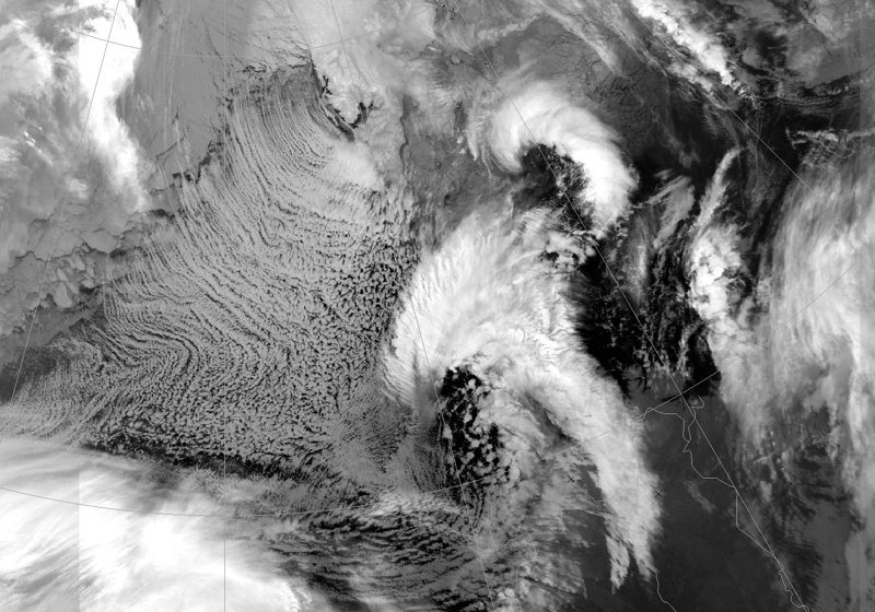 Chart layers from the Norwegian Meteorological Institute (MET Norway) are being provided by BarentsWatch to show the probability of a Polar low hitting an area within the next 42 hours.